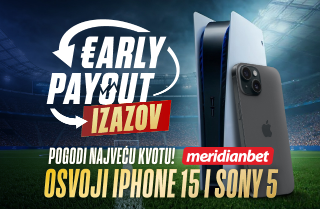 Ali, to nije sve! Sve do kraja februara se održava Early Payout izazov! Pridružite se takmičenju koje vam može doneti iPhone 15 ili Sony Plastation 5. A, da biste učestvovali, potrebno je da se na vašem tiketu nađe bar jedan meč iz Early Payout ponude.