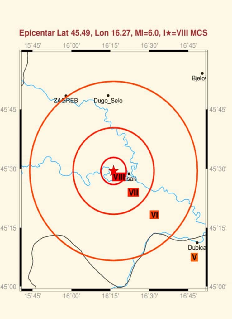 Хрватски медији јављају да је епицентар потреса код Петриње, а магнитуда је била 6,3 степена Рихтерове скале.